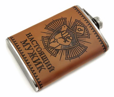 Фляга 9 унций (0.27л) обтянутая кожей с рисунком "Настоящий мужик"