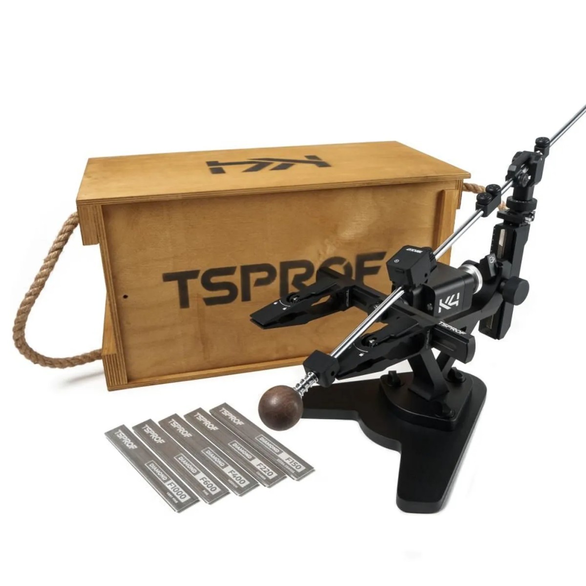 Стойка изделия и основные узлы системы заточки TSPROF K4 выполнены из авиационного алюминия с матовым черным анодированием. Это не просто дань эстетике, а технологичное решение, повышающее долговечность станка. Покрытие защищает металл от коррозии и мелких механических повреждений, не выцветает со временем и устойчиво к воздействию окружающей среды. Тактильно приятная матовая поверхность не требует особого ухода, сохраняя безупречный вид вашего профессионального инструмента на протяжении всего срока службы.
