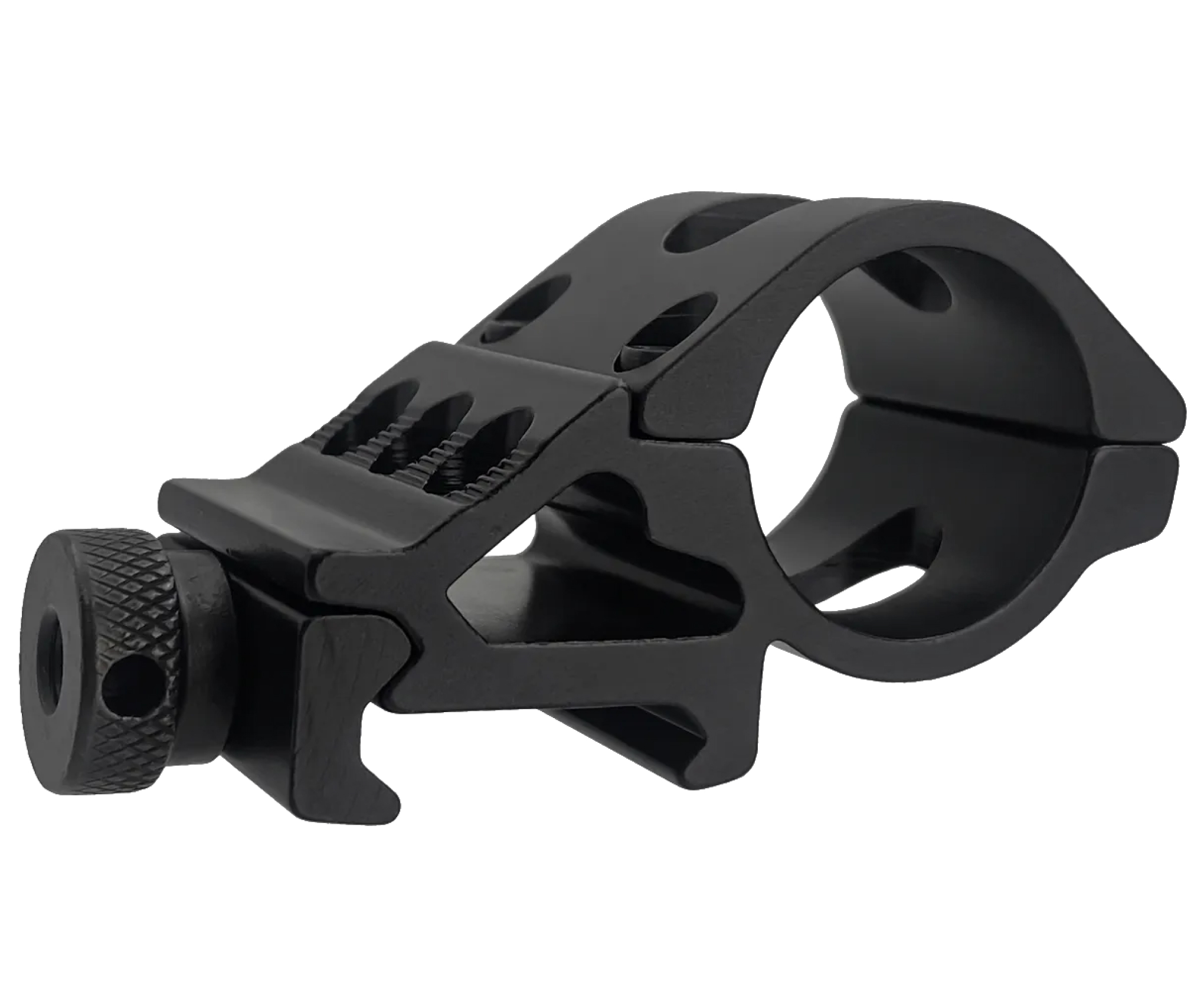 Крепление под углом Centershot JKGA-QD28 предназначено для установки на планки типа Weaver с шириной направляющего паза 22 миллиметра. Кроме прочего, требуется отметить наличие быстросъемного фиксатора в виде рычага, позволяющего оперативно снять или установить элемент тюнинга, например, при транспортировке.