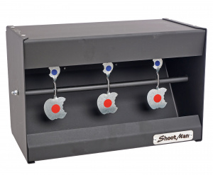 Рассматриваемый образец привлекателен компактностью - размер короба составил 20х30 сантиметров, что позволит использовать его как в помещениях, так и брать с собой в поездки. Корпус изделия Шутман служит не только для размещения целей - закрытая конструкция работает в качестве пулеулавливателя. Следовательно, снижается риск повреждения окружения, а также упрощается уборка.