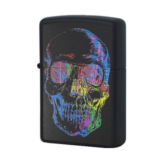 Корпус ZIPPO 28042 "Skull Design" выполнен из прочной латуни и стали с матовым черным покрытием Black Matte, которое защищает поверхность от царапин и придает изделию элегантный вид. Разноцветный рисунок черепа нанесен на зажигалку, создавая эффект брызг краски, что подчеркивает ее оригинальность и стиль.